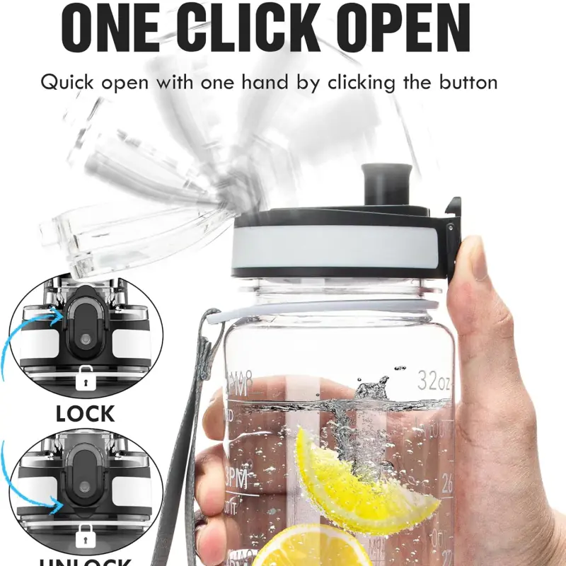 This water bottle with time marker open with one hand by clicking the button to access water. Highly suitable for boys and girls, and all ages. The flip-top lid is used a secure lock, making it dust-free and leak-proof. The frosted texture of the water bottle allows you to hold it better