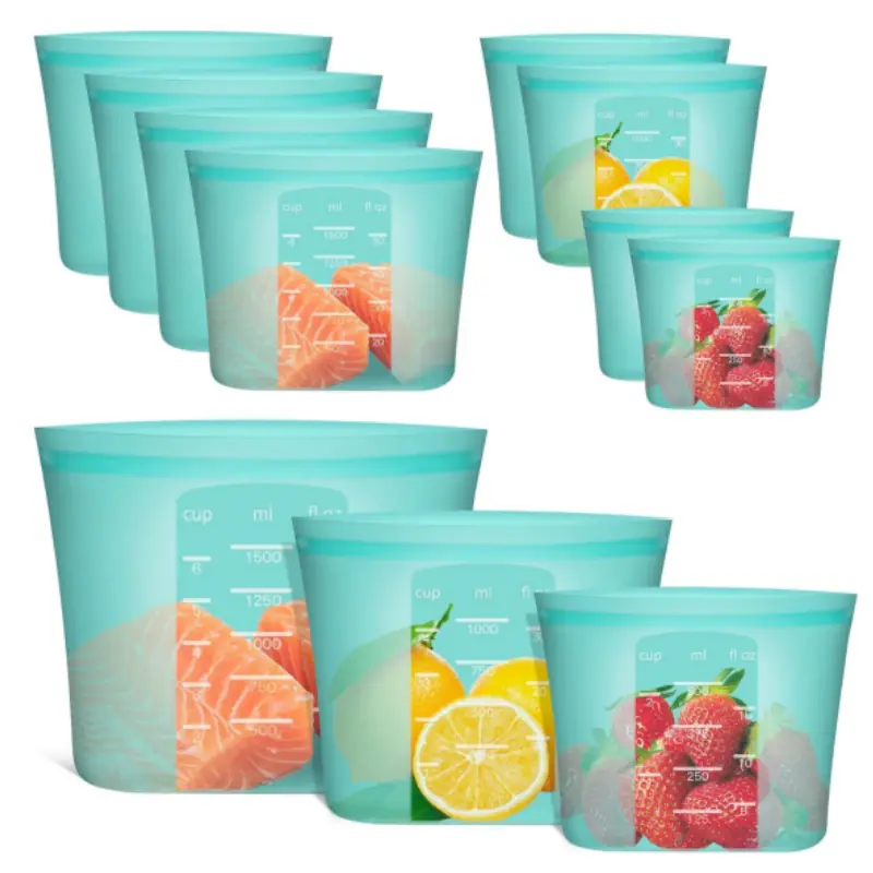 This Zip Lock Container for food clearly marked measurements in cups, ml, and fl oz for easy use. Translucent body offers a glimpse inside. Robust construction ensures strength. One silicone bag can replace 300+ single-use plastic bags, saving money and creating a waste-free world.