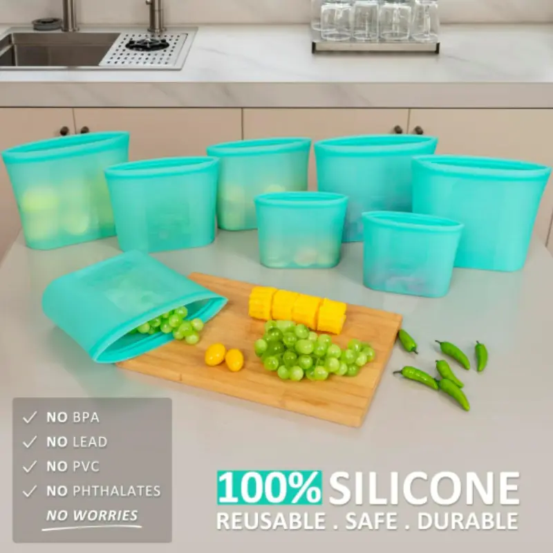 Zip Lock Container are 100% food-grade, free from PVC, chlorine, and BPA. Non-toxic, odorless, and safe for your family. Lightweight, easy to transport, and store—an ideal everyday solution. You will receive 4 Large size 1.5quart/50.7fl.oz/6cup/1500ml, 2 Medium size 33.8fl.oz/4cup/1000ml(Quart size for sandwich) and 2 Small Snack size 16.9fl.oz/2cup/500ml in beautiful aqua color
